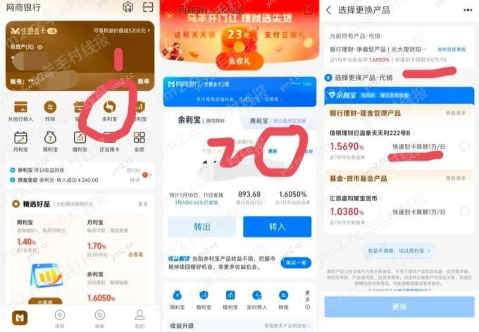 ①如果现在是普通版(日限额1万),就修改成余利宝优享版