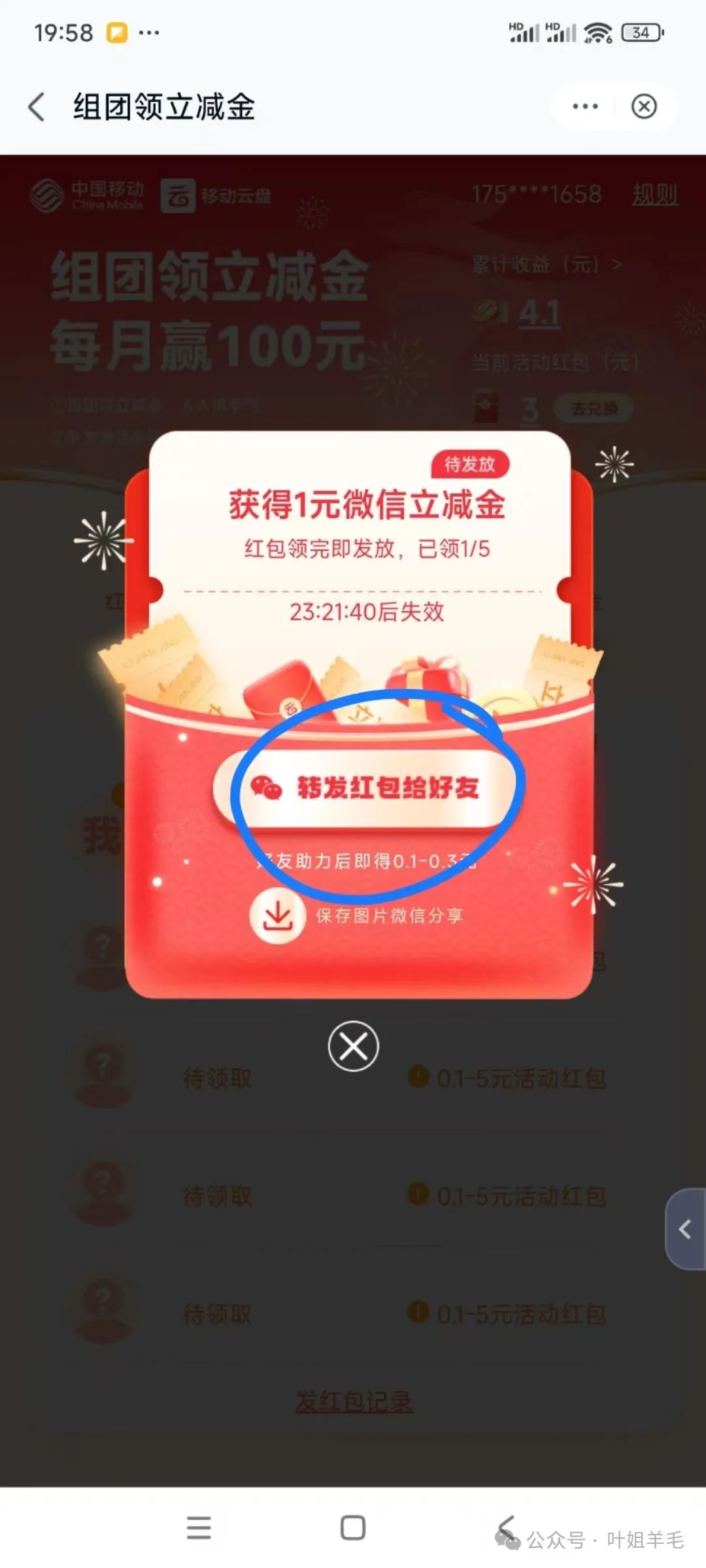 ↑图,点转发红包给好友,给你的朋友发,让他们领,5个人领了之后,你就有1块钱了